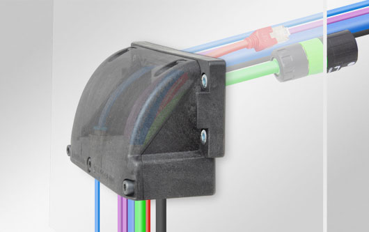 El nuevo pasamuros KEL-FG-ER con un envolvente partido es la solución perfecta para una alimentación de cables de 90° con y sin conectores. Debido al sello integrado, se proporciona una clase de protección de hasta IP65.