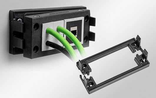 Con el sistema inserto adaptadores IMAS-CONNECT?, puedes utilizar fácilmente tu entrada de cable dividido como una interfaz individual para conectores. No es necesario realizar un recorte separado para conectores tipo keystone, conectores circulares, etc. Esto no solo reduce el tiempo de instalación, sino también el espacio requerido en la superficie de montaje. Si no se utiliza directamente un conector tipo Keystone preensamblado, la tapa protectora con sellado integrado ofrece una protección confiable contra salpicaduras de agua y polvo.