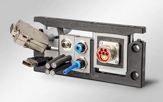 La gama KEL-FA es un sistema compacto para paso y sellado de cables conectorizados, así como tubos o mangueras neumáticos, utilizando insertos KT. Después de llenar el marco con los insertos y cables, se coloca la tapa y las dos palancas de sujeción se bloquean con la parte inferior presionándolas hacia abajo. La construcción a prueba de torsiones del KEL-FA permite un montaje intuitivo.