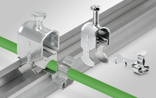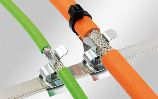 Las abrazaderas de cable se caracterizan por un alto rango de sujeción (6 – 50 mm). El clip de pantalla LFC conecta la malla del cable a tierra.