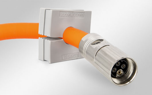 可分式 U 形電纜穿芯,適用于帶或不帶連接器的電纜(線徑范圍為 4 - 11 mm)。 免工具安裝。
