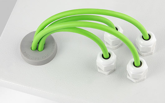 該電纜引入底板具有很高的安裝密度,電纜密封防護(hù)等級達(dá)IP66。電纜可以從兩側(cè)穿過。