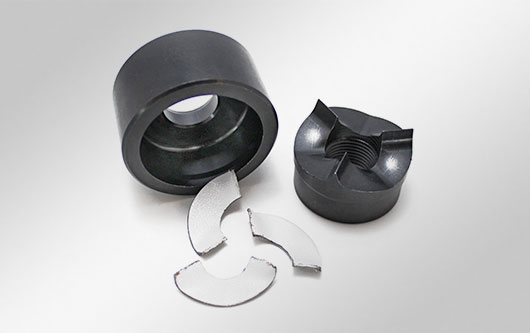 易科智連可以提供一個(gè)圓形的沖孔工具,適用于 PG 16, M16, M20, M25, M32, M40, M50, M63, M75 和M85的開孔。這個(gè)沖孔工具可以把金屬片分成三塊,這樣就可以輕易地將切割下的碎片倒出。沖孔工具的特殊切割形態(tài)可以減少切割時(shí)的壓力,也可以減少所用的力氣。